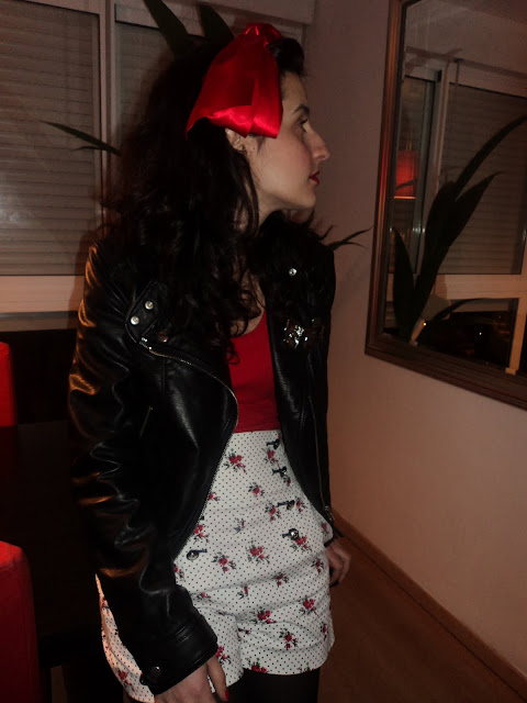 Amo, Amo, Amo os calções do look de hoje..Mal os vi, soube que tinham que ser meus ^^ Love at 1st sight ^ ^ Combinei-os com uma blusinha de manga "froufrou" vermelha, perfecto de cabedal, collants pretas opacas e acessórios vermelhos (Mega laço ^^ e sabrinas)