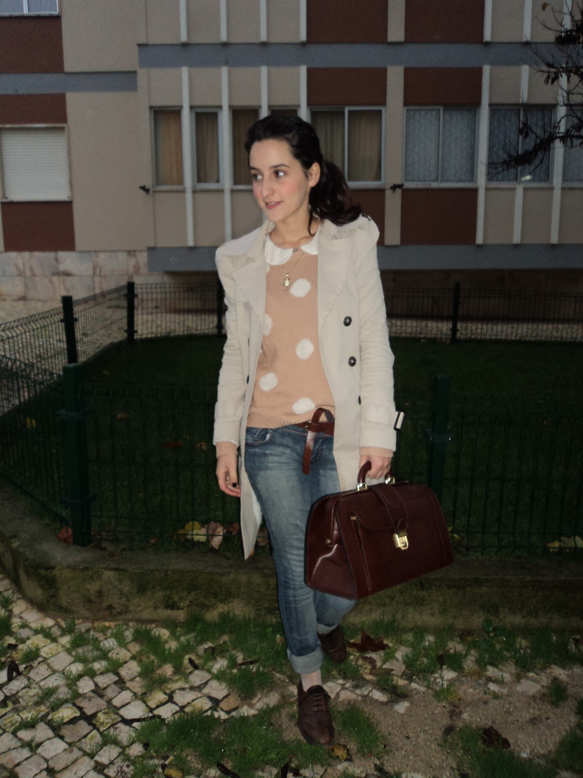 Neste outfit, tentei utilizar alguns dos itens, que raramente faltam nos looks da Alexa: Trench Coat, Jeans, Camisolas Oversized, Oxford Shoes e Malas Vintage (eu sei que podia ter optado por uma satchel bag, mas sendo que infelizmente não tenho nenhuma "Alexa" da "Mulberry", preferi usar a minha doctor bag vintage) :))