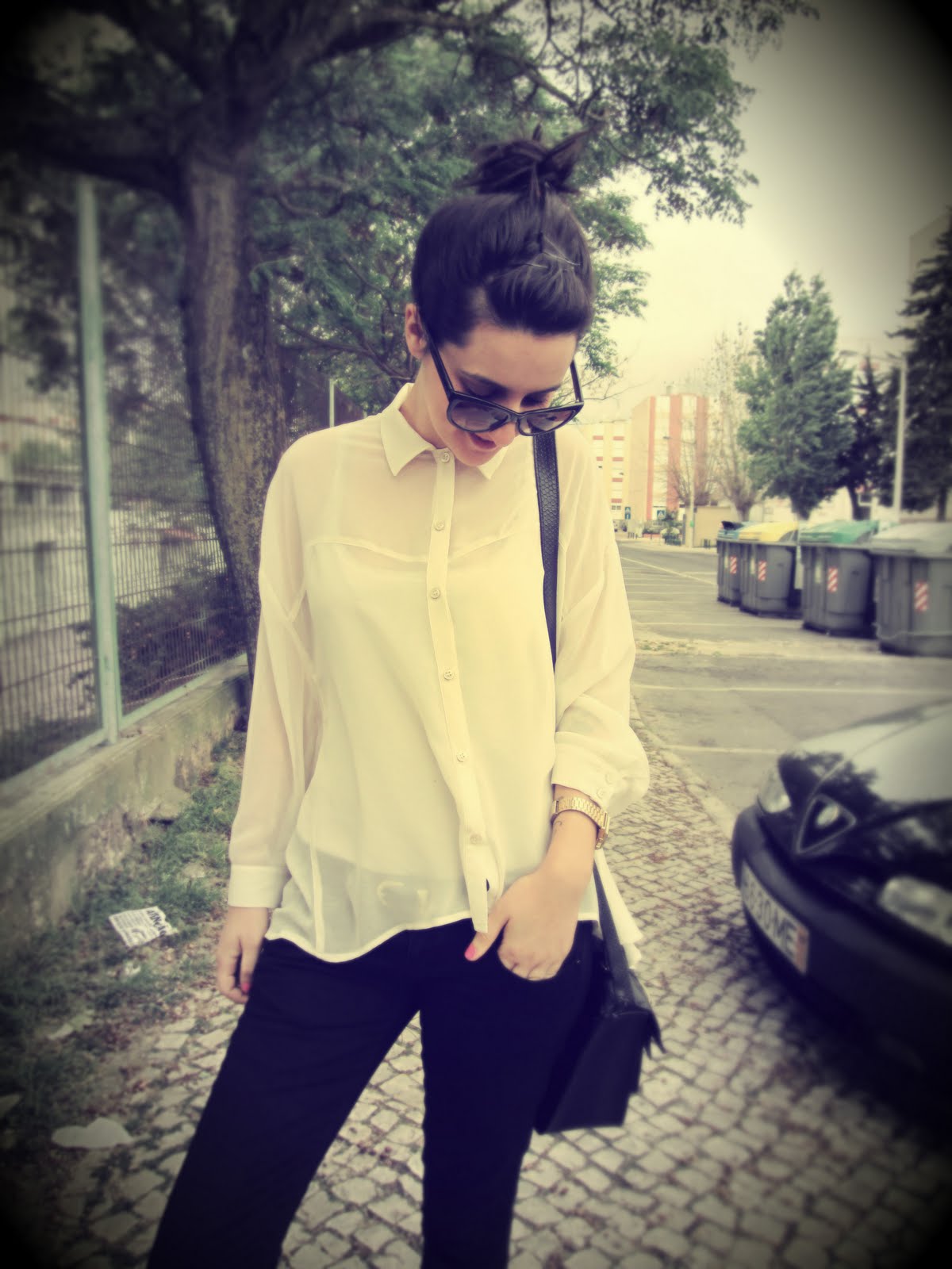 Este é um outfit super diferente do que vocês estão acostumados a ver em mim. Um look mais andrógino, onde coordenei as minhas skinnies pretas, blazer boyfriend e uma das minhas mais recentes aquisições: uma blusa sheer perfeita!! :))